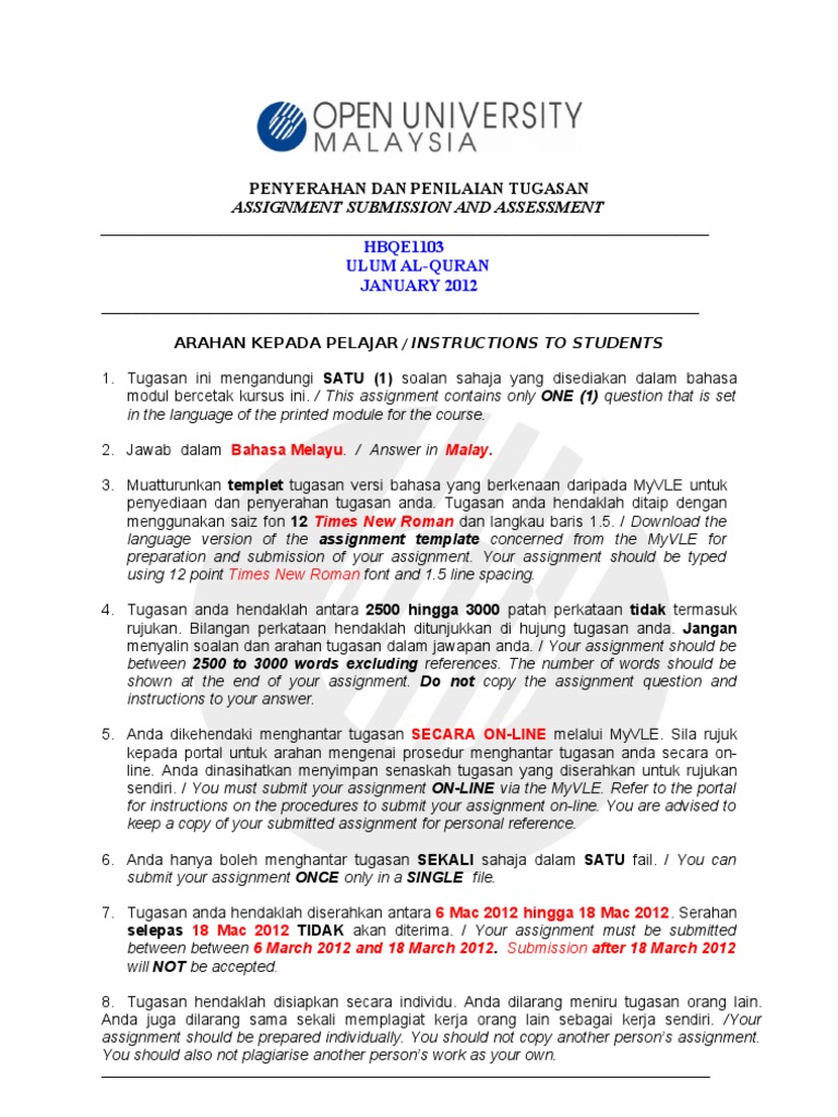 Assignment Adsq1103 Tugasan Subjek Pengenalan Ulum Al Quran Open University Malaysia Fakulti Studocu
